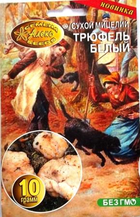Мицелий грибов: белый гриб - 60 грн, весёлка - 60 грн, груздь - 40 грн, подберёзовик - 60 грн, подосиновик - 60 грн, польский гриб - 45 грн, рейши - 45 грн, рыжик - 60 грн, рядовка наземная - 40 грн, кольцевик - 30 грн, лисичка жёлтая- 45 грн, лисичка серая - 45 грн, маслёнок - 60 грн, шиитаке - 45 грн, трюфель белый - 75 грн. трюфель чёрный - 75 грн. Упаковки по 20 грамм расчитаны на площадь 3 м2. |