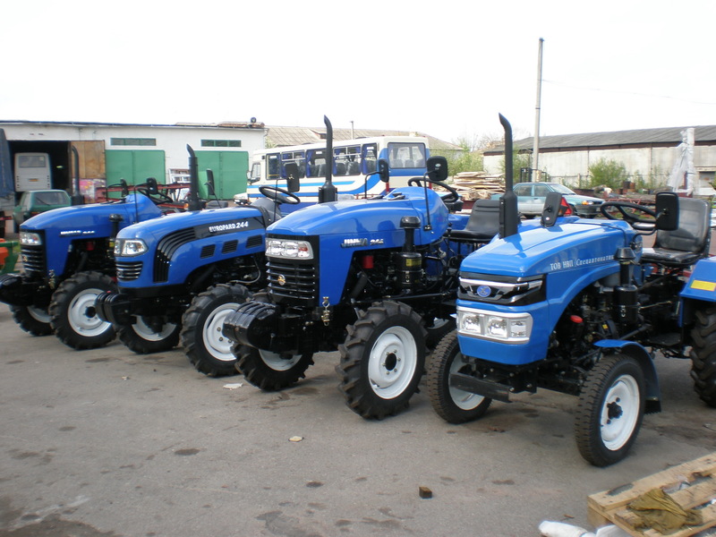 Агрегация оборудования плуг четырехкорпусный, сенокосилка 2,1 м, почвофреза 1,4 м, шестнадцатидисковая борона, культиватор – окучник – рыхлитель 3-х или 4-х рядный, картофелесажалка двухрядная, сеялка двенадцатирядная, водяной насос, прицеп-тележка, прицеп гидравлический, фронтальный погрузчик и задний экскаватор