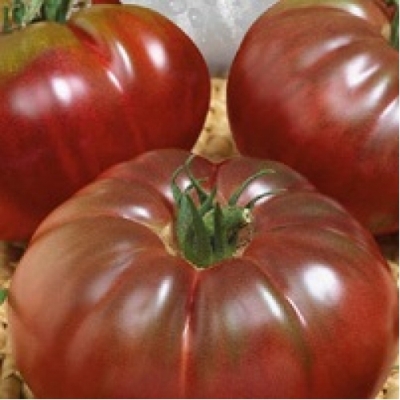 Томат арбузный черный - красивый сорт с круглыми, слегка ребристыми, черными и вкусными, как шоколад, плодами массой около 400 г. Высокоурожайный и устойчив к болезням.