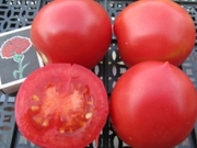 Томат денис - плоды массой 300 г, розовые, равномерно окрашены, округлые, практически не растрескиваются, очень вкусные. Высота куста - 70 см. Не требует подвязки и пасынкования.
