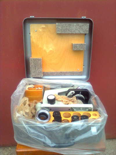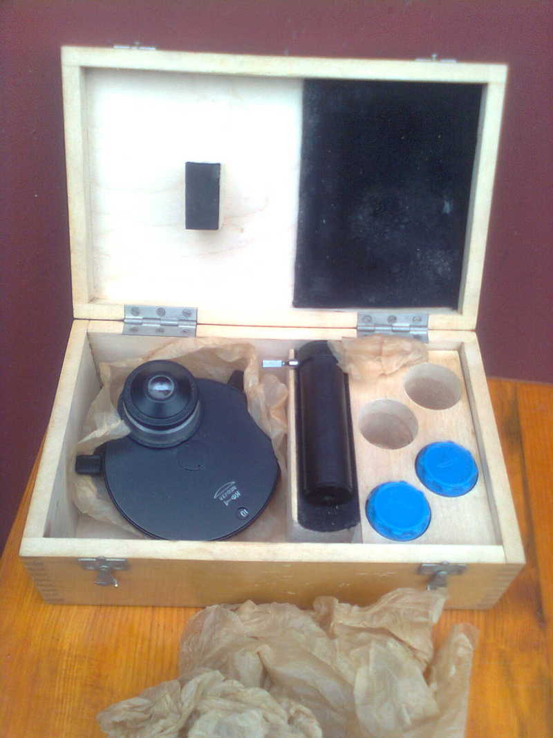 Mикроскоп дорожный монокулярный Биолам Д11 производства ЛОМО, складского хранения (дорожный вариант рабочего микроскопа Биолам Р11). Предназначен для исследования прозрачных препаратов в проходящем свете в светлом поле. + Конденсор темного поля -специальный конденсор для исследований биологического материала в проходящем свете темного поля. В работе не использовался. |