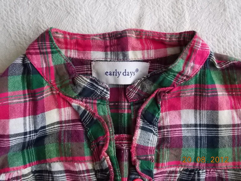 Рубашка к клеточку, фирма Early days. Возраст 1-3 года, рост 80-98 см. Длина 35 см, ширина плеч 22 см, длина рукава 31 см. |