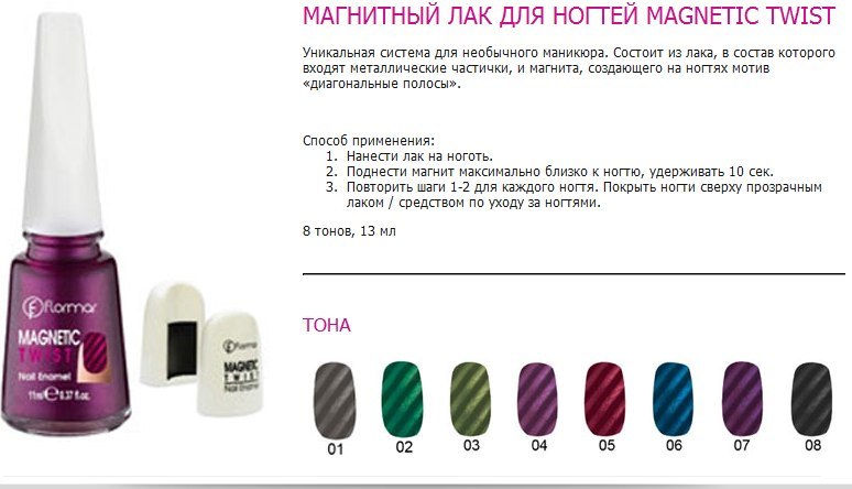 МАНИКЮР ПОЛУЧАЕТСЯ просто супер и не нужно ходить в салоны лак-магнит НОВИНКА 8 ЦВЕТОВ!!! лак - магнит (магнит идет в комплекте) |