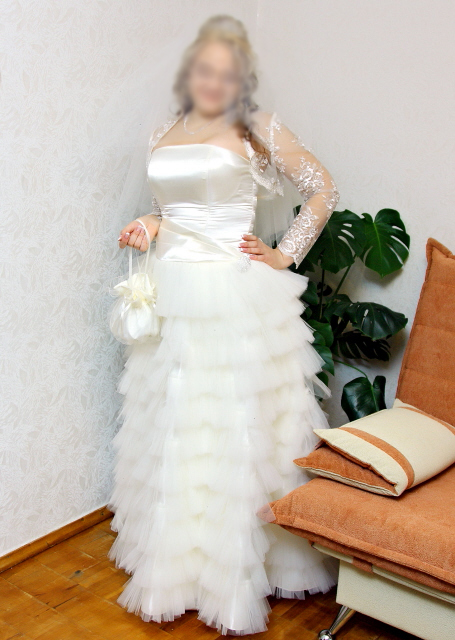 Продам платье свадебное (б/у - 1 день) Состояние - отличное. Размер 46-48, рост 160-170. Цвет - шампань. Куплено в салоне. |