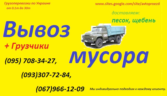 Вывоз строительного мусора в городе и области. Вывоз старой мебели, хлама. Услуги грузчиков. Обращаться по тел. (095) 708-34-90, (093)307-72-84, (067)966-13-15 |