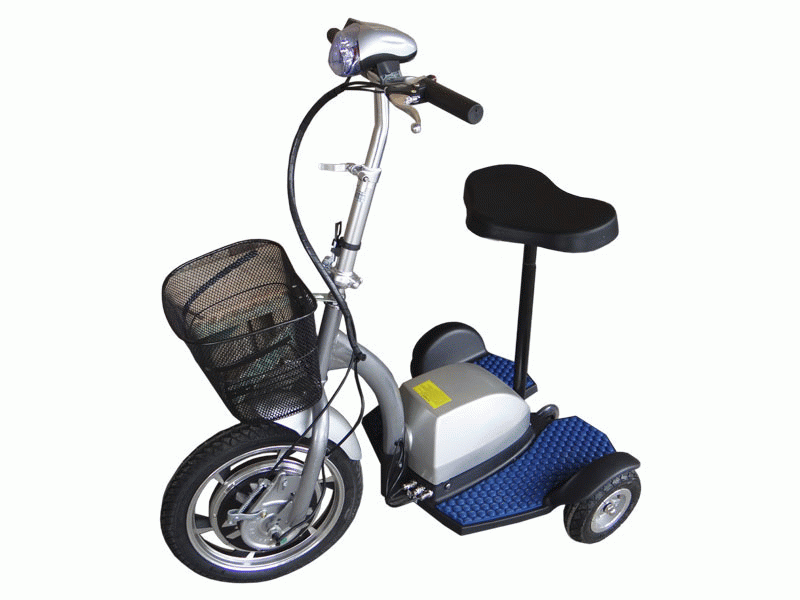Компактный и лёгкий трёхколёсный электроскутер с сиденьем, для всех возрастов и весовых категорий - очень удобен для поездок на небольшие расстояния.