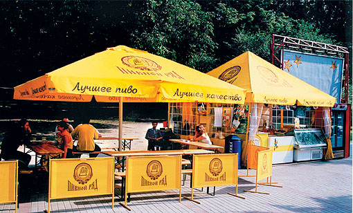 Изготовление и продажа уличных зонтов, для торговли, промо зонтов и зонтов для кафе. Разного размера. Нанесение Вашего фирменного логотипа, а также любого изображения на тенты зонтов. Низкие цены. |