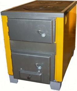 Номинальная тепловая мощность, кВт - 17,5 Площадь отопления до 200 м.кв. Объем топки - 0,058 м3 КПД при работе в отопительном режиме не менее, % 75 Рабочее давление воды не более, кПа (кг/см) 130 (1,3) Объем воды в аппарате не менее, л 45 Параметры теплоносителя, температура не более 90 о С Продолжительность рабочего цикла на угле не менее, ч 8 Высота не более, мм 700 Ширина не более, мм 450 Длина не более, мм 800 Присоединение к системе отопления 2" Площадь сечения газохода, см2, не менее 190 Масса не более, кг 170 Оснащен чугунной плитой для приготовления пищи |