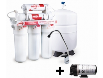 Данный фильтр разработан на основе механизма обратного осмоса. На сегодня это самый совершенный способ очистки воды. В комплектации с помпой фильтр может эффективно работать в водопроводных сетях с низким давлением. Конструкция фильтра состоит из двух основных частей: трехступенчатого префильтра и высококачественной обратноосмотической мембраны. В состав префильтра входят три картриджа: механический, угольный и комбинированный. Механический картридж состоит из пористого полипропиленового материала и предназначен для очистки воды от механических примесей (ржавчины, ила, песка и других взвешенных частиц). Угольный картридж содержит обработанный серебром активированный уголь из скорлупы кокосового ореха. Удаляет хлор, хлорорганические соединения, тяжелые металлы. Комбинированный полипропиленово-угольный картридж. Доочищает воду после первых двух картриджей, задерживая частички размером более 5 мкм. Продлевает срок службы обратноосмотической мембраны. Мембранный элемент. Полимерная полупроницаемая мембрана пропускает только молекулы воды и кислорода, задерживая до 99% всех примесей, в том числе вирусы и бактерии. Загрязнения смываются в канализацию, очищенная вода накапливается в герметичном накопительном баке. Даже при отключении воды у Вас всегда будет запас чистой воды. Посткарбон — картридж из высококлассного активированного угля из скорлупы кокосового ореха кооректирует вкус и запах очищенной воды, придавая ей изысканный немного сладковатый привкус. В комплект фильтра входит накопительный бак объемом 8 л. Внимание! Максимальное рабочее давление воды для данного фильтра — 5 атм. Для защиты фильтра от превышения давления и гидроударов настоятельно рекомендуем устанавливать специальные регуляторы давления. По всем вопросам сервисного обслуживания обращаться в сервисный центр «Укртеплосервис»