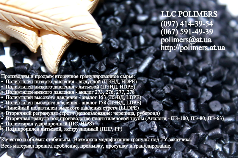 Підприємство постійно пропонує: вторинну гранулу полістирол удароміцний (УПМ), вихідний матеріал - середина холодильника, кришка телевізора. Можливий підбір кольору по каталогу RAL. Колір сірий, чорний, блакитний, жовтий, червоний, зелений. Обсяг 15-20т / міс. Працюємо по всій тер-рії України. При великих замовленнях доставляємо своїм транспортом. |