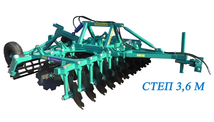 Агрегат почвообрабатывающий дисковый СТЕП М прицепной с шириной захвата от 3,67м до 4,56м — предназначен для обработки почв всех типов на глубину 5 - 18 см челночным способом, создают оптимальную природную структуру грунта для роста растений и прикатывают верхний слой почвы для сохранения почвенной влаги. Эти агрегаты объединили в себе функции плуга, лущильника, культиватора и дисковой бороны.