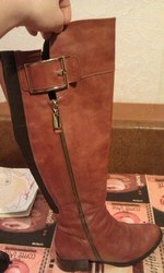 Продаю зимние сапоги!!!Очень классные и качественные,производитель Польша,кожаные.Одела пару раз.Состояние новое.Продаю потому,что сделали операцию на ноге,и не могу носить.Подошва очень удобная и практичная.Цвет коричнево-рыжий.Размер стельки 24,ширина стельки 8, подьем 8,высота каблука 4 см,высота голенища от каблука вверх 38,но спереди немного выше 42!!Покупала за 1500 грн. |