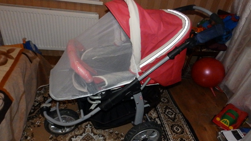 Модель коляски очень удачна, практически отсутствуют недостатки. Качественная ткань, которая легко моется. Прекрасно смоделированный капюшон, который практически идеально закрывает ребёнка от дождя или солнечных лучей. Нельзя не упоминуть москитную сетку, которая также замечательно закрывает тело малыша от насекомых. Матрасик вкладыш покупали отдельно - очень красивый и удобный. Также на ручке прикреплен на липучке цехол для телефона. Есть незначительные царапины на раме. Не скрипит, проедет даже на самой худшей дороге. Стоит отметить также амортизаторы, которые делают ход коляски очень плавным и комфортным для малыша. Дождевика в комплекте нету. Бампер покупали отдельно. Также сумку покупали отдельно, но продаю все в комплекте!