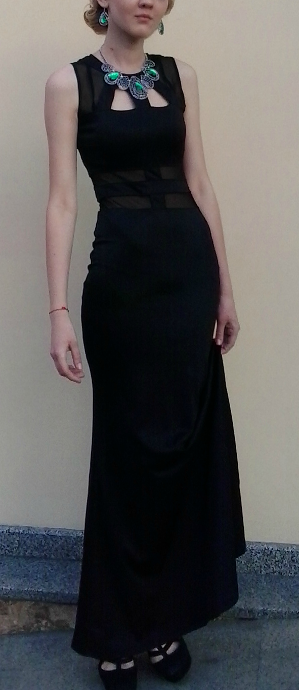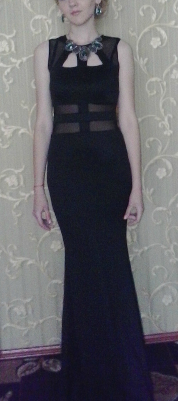 Шикарное вечернее платье. Отличное состояние. Одевалось 1 раз на выпускной бал.Цвет-чёрный с прозрачными вставками.Размер-S.Приталённое с небольшим шлейфом (русалка) |