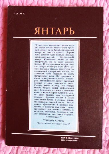 Элен Фракей. Янтарь. Перевод с английского Н.Е.Суторминой. Из-во Мир, М., 1990г. 198 стр. с цветными и черно-белыми фотографиями, обложка ламинированная мягкая, формат 60x90/16 (145х215 мм), состояние хорошее.