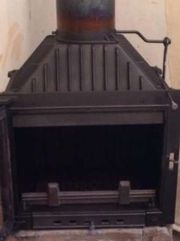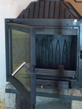Имеет высокий дымосборник, вмонтированный дефлектор и заслонку (шибер, каглу). Уплотнение между дверкой и стеклом, дверкой и телом топки осуществляется графитовыми шнурами. Вышеперечисленное позволяет добиваться длительного горения одной закладки дров, а так же экологически чистого сгорания топлива. Литье чугунных элементов точное, толщина шва в топке не более 2мм. Толщина стенки не менее 8мм. Высота радиаторов около 20мм. Топка оборудована жаростойким стеклом «Робакс», на лицевой стороне которого находится «воздушная подушка» препятствующая загрязнению стекла сажей. Ящик для золы присутствует. Топка оборудована съемной ручкой, что является преимуществом в процессе эксплуатации камина, так как оберегает от ожогов. Угол открытия двери составляет 180 градусов.