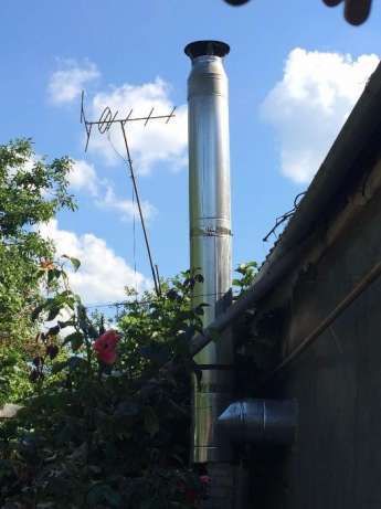 Также, могу продать дымоход сендвич высотой 3 метра собранный под эту топку . Диаметр дымохода внутренний 200 мм, наружный 260 мм., так же б/у 2 месяца.(см.фото)