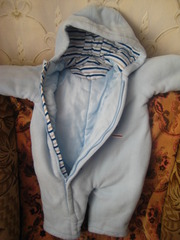 Продам очень хороший комбинезончик для вашего малыша. Состояние новой вещи. Вверх на флисе, что очень тепло и комфортно,подкладочка на небольшом утеплителе. Мы носили, и остались очень довольны. Ребенку в нем было комфортно и тепло. И что самое главное, что ребенок в нем не потел, как бывает часто в некачественных вещах. Комбез на возраст 9-12мес. Мы носили с 7мес. Смотря какой ребенок. Ручки можно закрыть, чтобы не мерзли. На рукавах специально сделаны отворотики. И чепчики есть , которые пристегиваются к комбинезончику, что бы не потерять. Застегивается на молнии прям к капюшончику, чтобы не выглядывала шейка малыша. Цвет светло голубенький. |