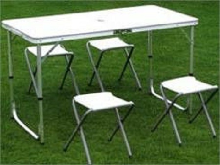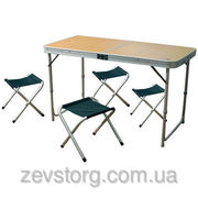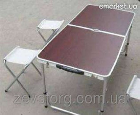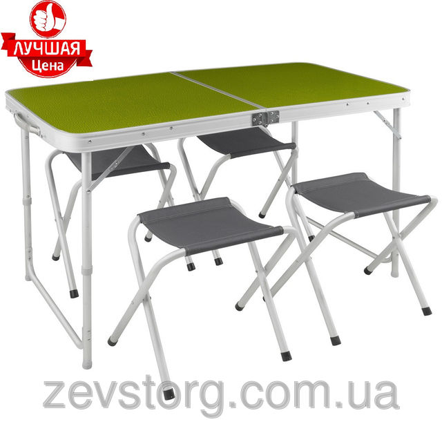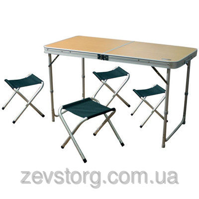 Надежный, практичный, удобный стол для большой компании. Выдержит нагрузку до 30 кг, что позволяет разместить на таком столе большое количество Ваших любимых продуктов. Столы для отдыха вы можете использовать, на рыбалке, на природе, в саду, на даче, так же он может послужить отличным подарком на день рождения. Этот недорогой стол с четырьмя стульями станет незаменимой вещью в Вашем быту. Высота стола регулируется двумя положениями, в середине стола есть отверстие под зонт. Так же вы можете приобрести у нас зонт для этого стола.