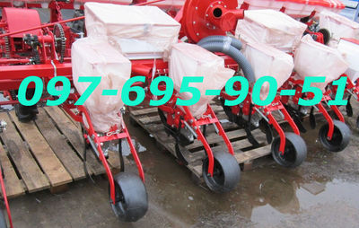 Сеялка супн-8 Оригинал (инжектор, вентилятор). Принцип работы: Посредством механизма передач от опорно-приводных колёс осуществляется вращение семявысевающих дисков и шнеков туковысевающих аппаратов. С помощью вакуума семена присасываются к находящимся в зоне разряжения отверстиям вращающегося диска и транспортируются из заборной камеры в зону сброса. Удаление лишних семян, присосавшихся к отверстиям, обратно в заборную камеру, осуществляется сбрасывающей вилкой. Сошник делает бороздку, укладывает сначала туки, они присыпаются землей и далее, в бороздку, падают семена так, что нет контакта семян с туками. Загортачи закрывают бороздку, прикатывающее колесо уплотняет почву, создавая контакт семян с почвой и условия для подтягивания для них влаги. Сеялка СУПН-6 СУПН-8 простая и неприхотливая в работе и обслуживании.