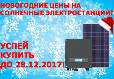 Новогодняя акция на сетевые солнечные электростанции под "зеленый тариф"!!! Покупайте оборудования для солнечных электростанций по очень привлекательным новогодним ценам и зарабатывайте . Так стоимость основного оборудования (сетевой инвертор и комплект фотоэлементов) на 10 кВт составит 6 695 долл.* на 15 кВт составит 9 795 долл.* на 20 кВт составит 12 795 долл.* Данное оборудование высокого качества, имеет гарантию 5 лет на инвертор и 10 лет на фотоэлементы. * Крепежные системы, защита инвертора и кабельная продукция для подключения не входит в стоимость. имя : Дмитрий тел : +38050-852-41-57, +38097-928-97-08 |
