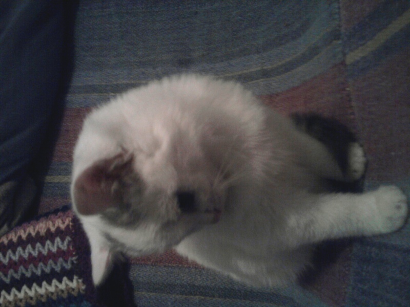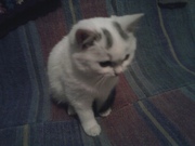 Молоденькая белая кошка, умная и ласковая. Очень любит сырую рыбу. |