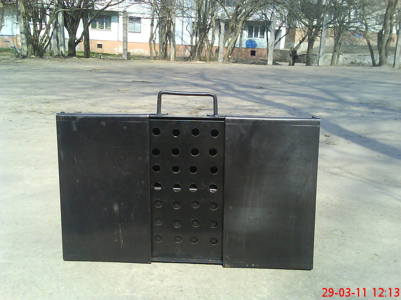 Металический. Сладной. Размер 50*30*5см. Сталь 3мм. Двойное дно. Толщина метала 3мм!!! Размер в сложенном состоянии длина 50 см, ширина 30 см, толщина 5см. В разложенном состоянии длина 50см, ширина 30см,высота 60см. Собирается в форму чемоданчика, имеет отверстия для притока кислорода, боковые перегородки устанавливаются в специальные пазы-НИКАКИХ ГАЕК И БОЛТОВ! Очень удобен для перевозки в авто, можно все лето не вынимать! Оптовым покупателям скидка! |